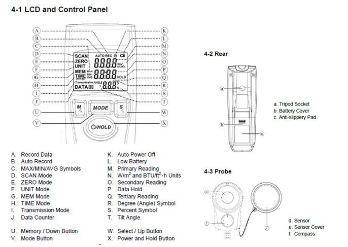 This instruments are designed to measure solar power in the range from 400 to 1100 nanometers. The good spectral range, orientation and angular detection of meter allow users to conduct the most precise quantitative measurements of solor power radiation.