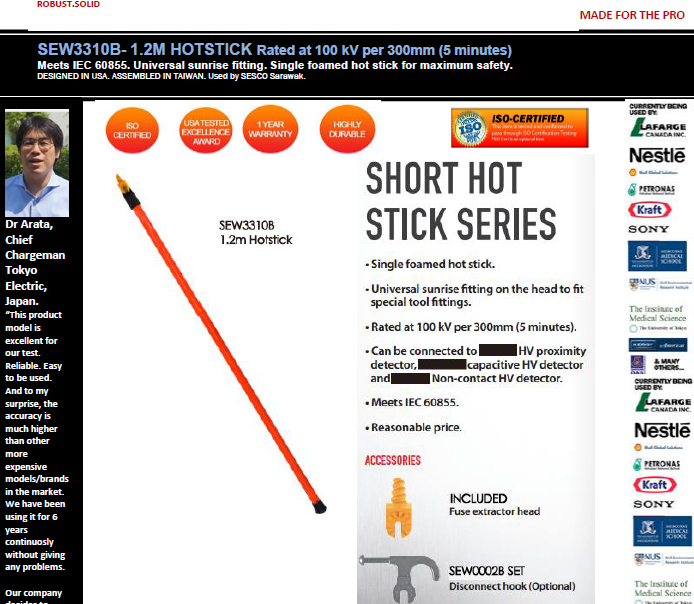 Featured item SEW3310B-1.2M SHORT HOTSTICK Rated at 100 kV per 300mm (5 minutes)