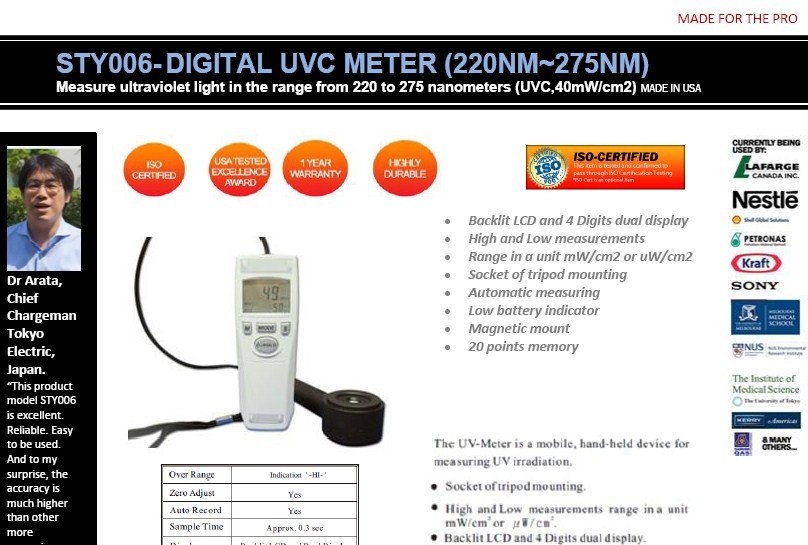 STY006 -UVC 254NM METER 220~275 NM from USA
